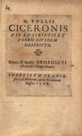 - M. Tulii Ciceronis vita, e scriptis et verbis eiusdem descripta [...]